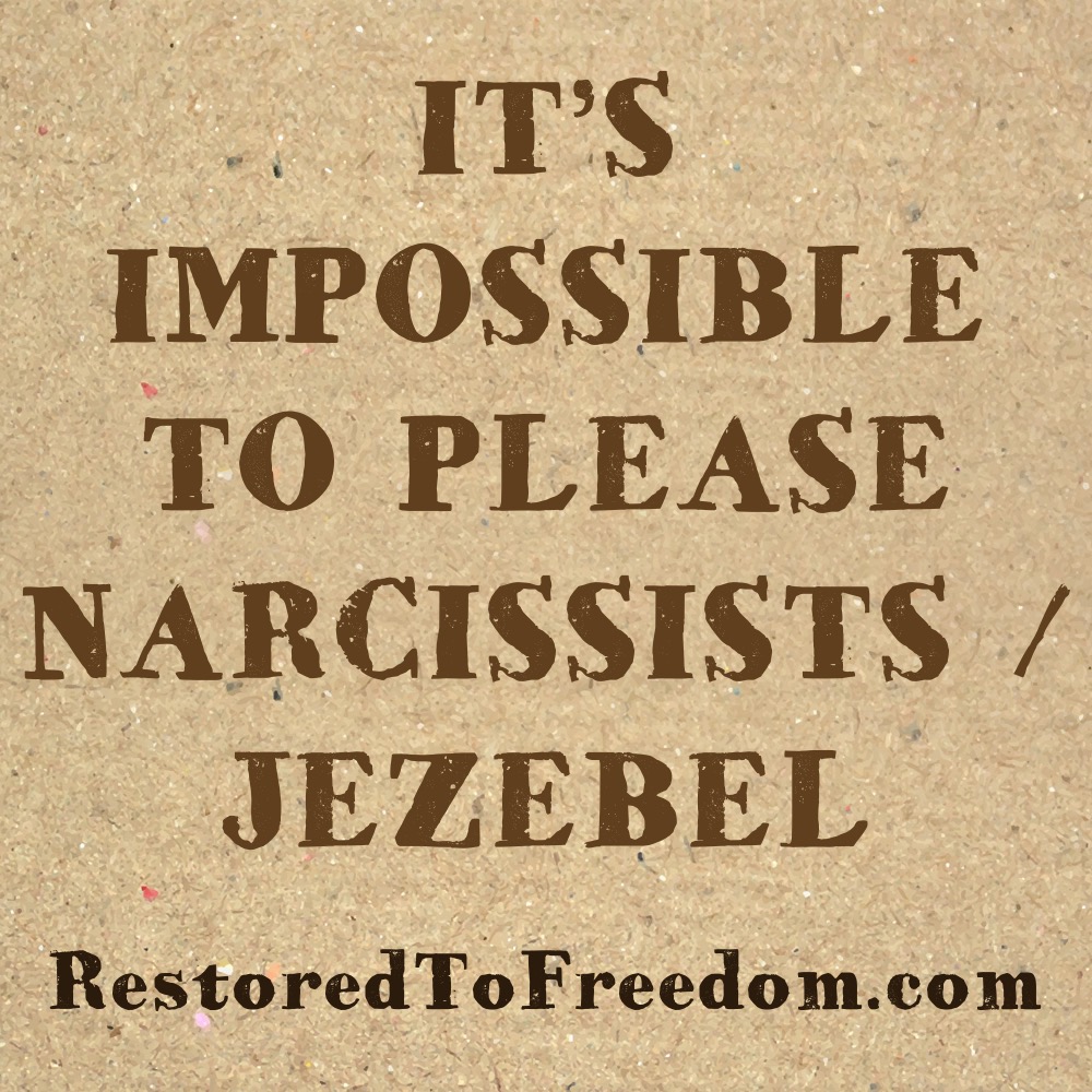 IT’S IMPOSSIBLE TO PLEASE NARCISSISTS / JEZEBEL People who are narcissistic and are affected by the spirit of Jezebel (both men and women) are impossible to please because nothing you do for them will ever be acceptable in their eyes. It’s because the demons that manifest in them love to control their victims to get […]